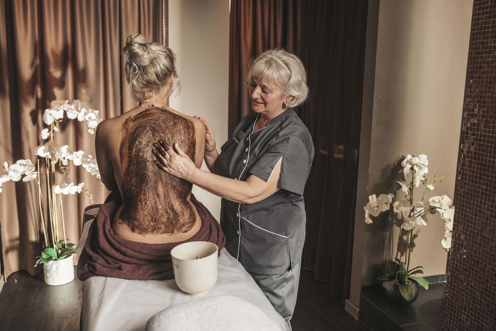 Naudi muretuid “kaloreid” – seljamassaažis kasutatakse orgaanilist šokolaadi, mis toidab nahka, lõõgastab meeli ja loob tõeliselt sensoorse elamuse. Šokolaadi soe ja pehme puudutus viib Sind hetkega sügavasse lõõgastusse. Täiuslik hoolitsus, kui soovid korraks kõik peatada… ja lihtsalt olla.